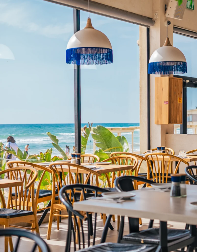 המסעדה מעוצבת בסגנון חדשני ומודרני, עם נוף מרהיב לים, ומספקת אווירה נעימה ומזמינה למשפחות, חברים וזוגות כאחד. בימים נבחרים, האווירה מתחממת הופכת לתוססת, צעירה ודינאמית עם דיג'יי ומסיבות שמכניסות את כולם לקצב הנכון.